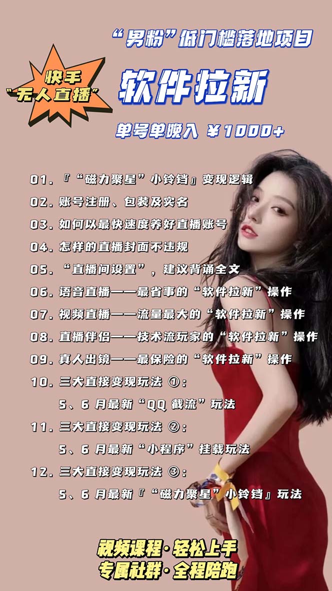 所以这种模式(快手官方“磁力聚星”小铃铛 + 无人直播)流量解决了,并且非常持久,只看你自己愿不愿意每晚花两个小时无脑开播而已。